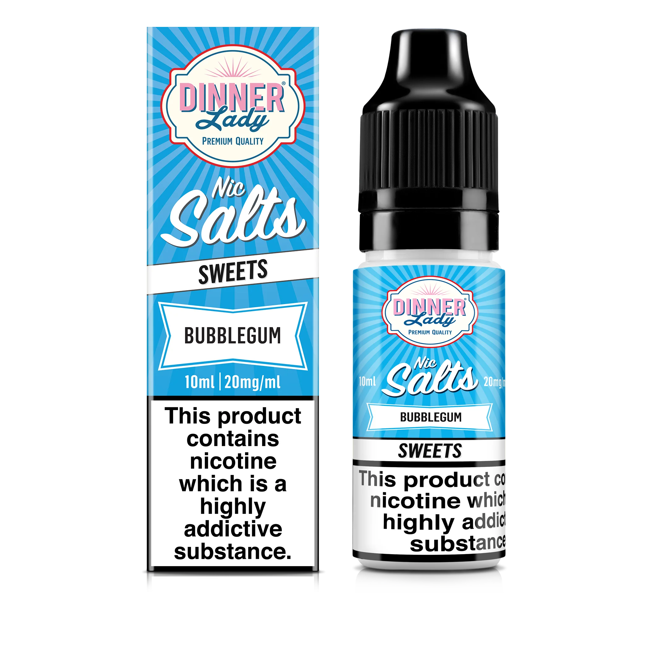 Recreating a classic candy flavour for vapers with a sweet tooth, this Bubble Gum Dinner Lady 50:50 Nicotine Salts formulation that most closely replicates the experience of smoking traditional tobacco products.