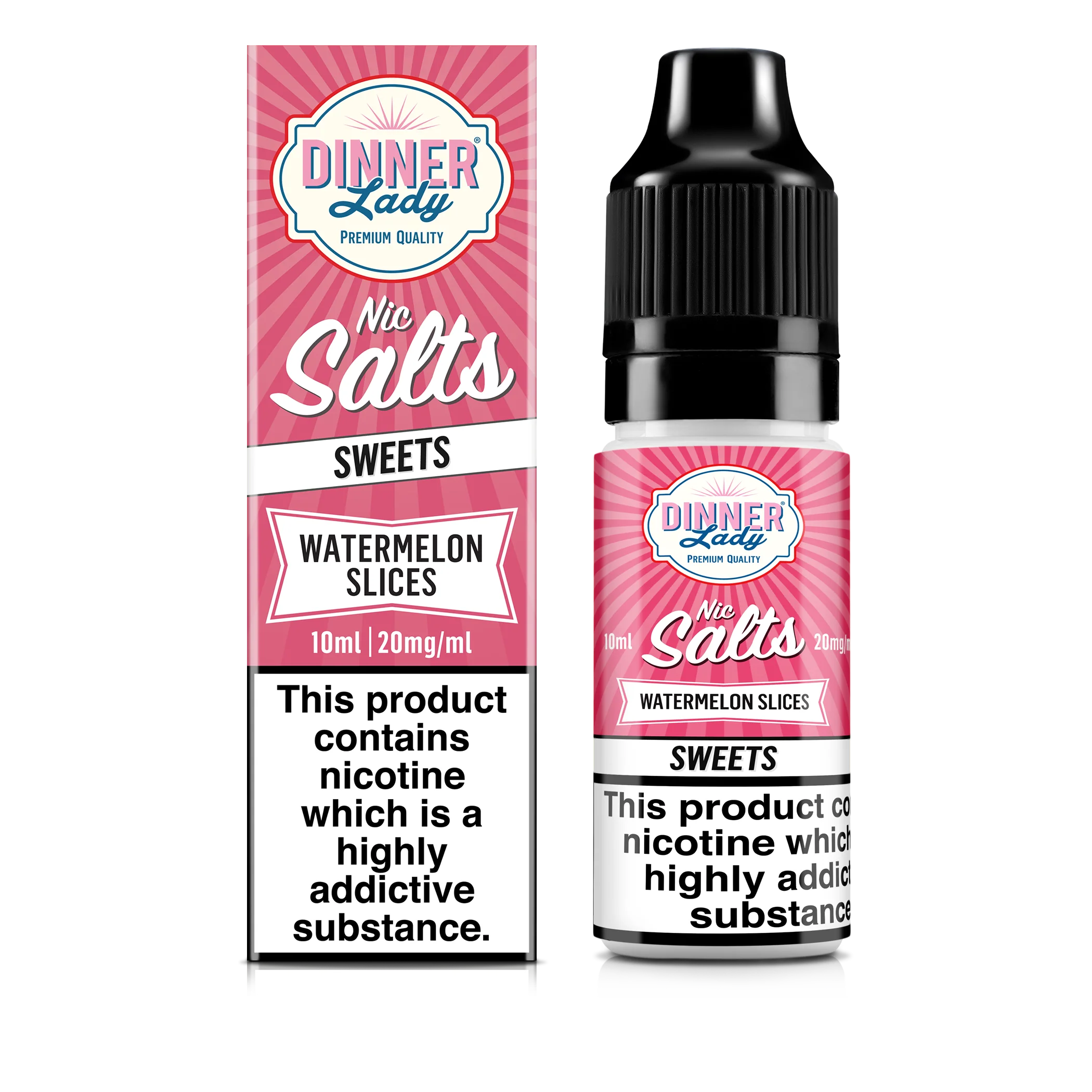 Capable of delivering higher strengths of nicotine without becoming too harsh on the throat, Dinner Lady Nic Salts are available in 10mg and 20mg nicotine strengths and also 5mg in selected flavours.